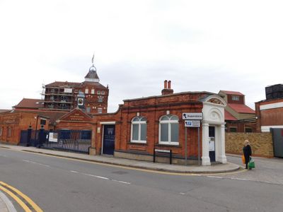 McMullens Brewery, architectural structure in Hertford, East Hertfordshire, Hertfordshire, UK