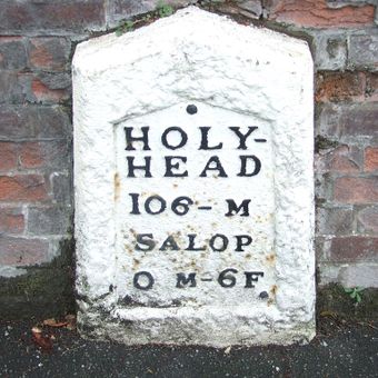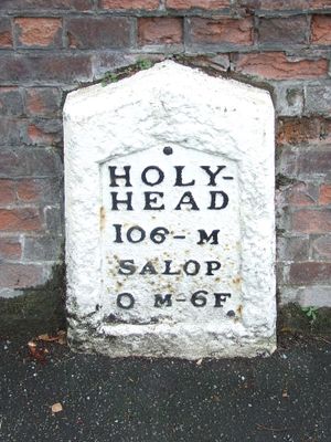 Mile Post At Sj 4834 1303, To North Of Number 35, milestone in Shrewsbury, Shropshire, UK
