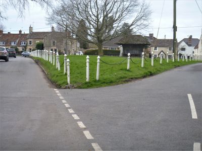 Bollards With Chains Enclosing Ham Green On All Sides, bollard in Holt, Wiltshire, UK