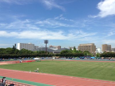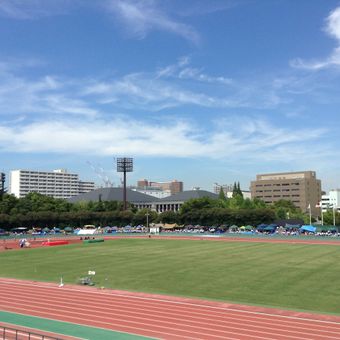 The Amagasaki Memorial Park Stadium features a main track field surrounded by tiered seating arrangements that accommodate local sporting events and competitions.