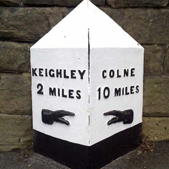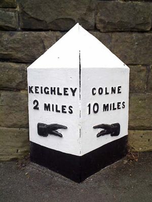Milepost On North Side Of Junction With Apsley Road, milestone in Keighley, Bradford, West Yorkshire, UK