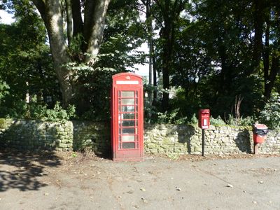 K6 Telephone Kiosk, Grade II listed telephone kiosk in Linton, Craven, North Yorkshire, BD23