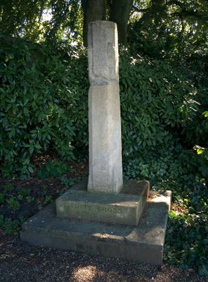Remains Of White Cross In Garden Of Number 15, stone cross in Wisbech, Fenland, Cambridgeshire, UK