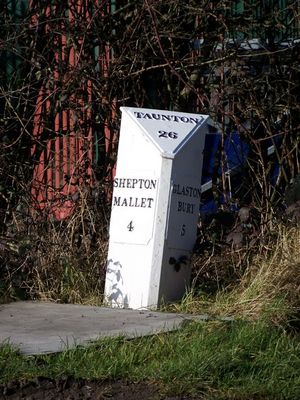 Mile Post At Ngr St 5733 3990, milestone in West Pennard, Mendip, Somerset, UK