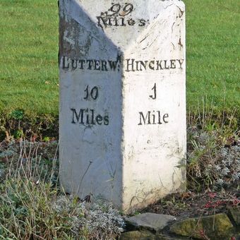 Milepost, by No. 240 Ashby Road, just S of jct with Normandy Way (A47)