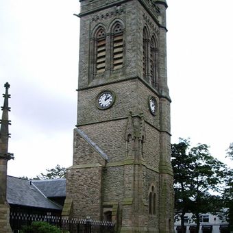 Tower of Church of St Bartholomew, church building in Westhoughton, Bolton, Greater Manchester, UK