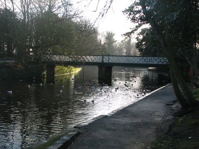 South Bridge Over Serpentine Lake In Botanic Gardens, bridge in Sefton, Merseyside, UK