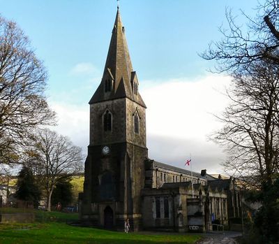The Church of All Saints features architectural elements representative of English ecclesiastical design, with its stone walls and traditional layout standing against the Derbyshire landscape.
