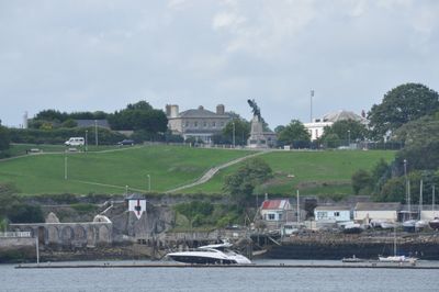 Hamoaze House stands as a large detached structure at Mount Wise, featuring architectural elements characteristic of late 18th-century military residences in Plymouth.