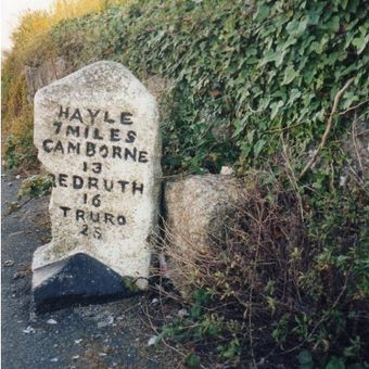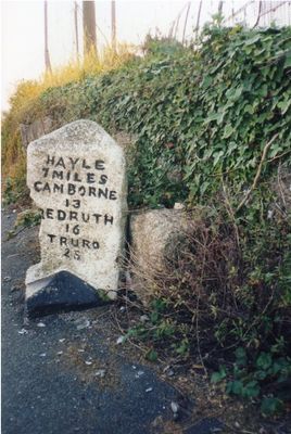 Milestone Standing At The Entrance To The Depot Of Mounts Bay Coaches, At Ngr Sw4851231161