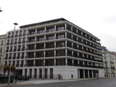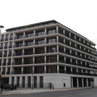 The building exemplifies modern London residential architecture through its integration of historical elements with contemporary design principles by David Chipperfield Architects.