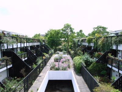 The estate represents a shift in British residential architecture, incorporating modernist principles that prioritize both community interaction and private outdoor spaces.