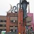 The sculpture integrates industrial elements with architectural heritage, incorporating galvanized ducting to form a trombone-shaped installation around existing building remains.
