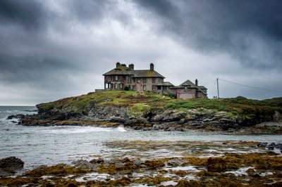 The name translates from Welsh to 'Rock by the Sea', reflecting the regional language heritage and the building's position on the Anglesey coastline.