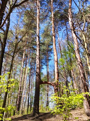 Ingrown Pines, srůstem význačné borovice, Chorzów Batory, Slezské vojvodství, Polsko