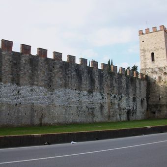 The city walls of Pisa are a fortified structure surrounding the center of the city, built from stone blocks and featuring multiple access points. Several towers and gates punctuate the route along their length.
