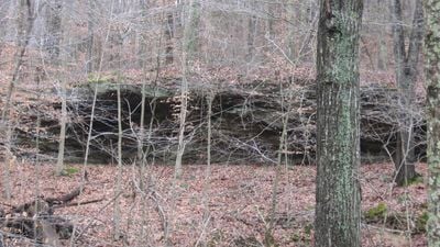 The natural rock formation in Hoosier National Forest extends over 0.1 acres, providing shelter against weather conditions at coordinates 38°13'42"N, 86°33'45"W.