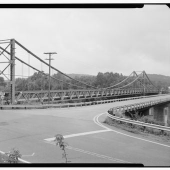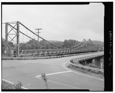 Dresden Suspension Bridge, Road bridge in Dresden, Muskingum County, Ohio, USA; Dresden, Muskingum County, Ohio, USA