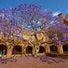 The jacaranda tree stands in the southeastern corner of the University of Sydney's main quadrangle, displaying purple flowers during late spring.