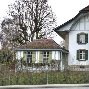 Garden pavilion, pavilion attached to residential building and part of a building ensemble in Worblaufen in the canton of Bern, Switzerland