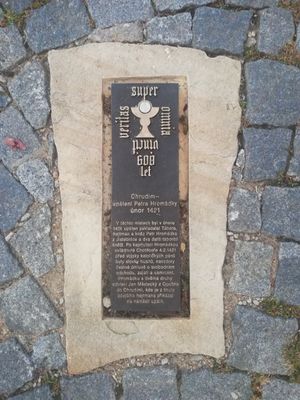 Pamětní deska Petra Hromádky, pamětní deska v dlažbě Resselova náměstí v Chrudimi