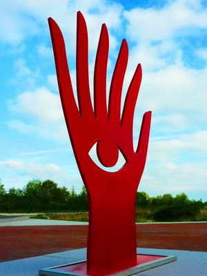Augenhand, sculpture by Ren Rong in Langenhagen near Hannover, Germany