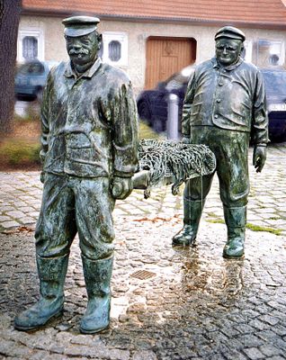 Fischerbrunnen, fountain by Karolin Donst in Arneburg, Sachsen-Anhalt, Germany