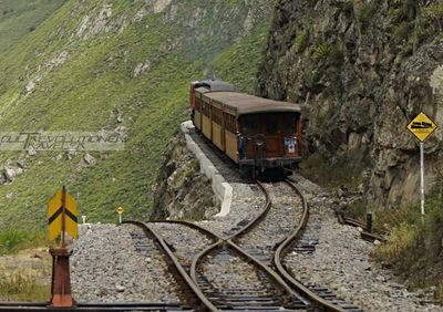 Nariz del Diablo is a mountain railway in Alausí Canyon featuring switchbacks along steep slopes. The line uses a specialized track system to navigate the challenging terrain between two stations.