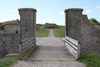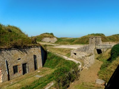 Fort d'Alprech stands on Cape Alprech with pentagonal walls, defensive ditches, and internal barracks designed to house one hundred military personnel.