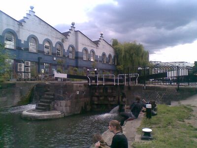The lock connects to LABS Hawley Wharf, a contemporary workspace development featuring 1000 desks across four canal-side buildings.