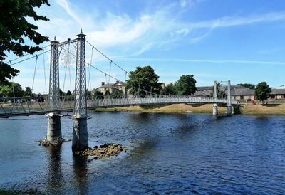 Infirmary Bridge, suspension bridge in Inverness, Highland, Scotland, UK, carries a footpath across River Ness