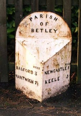 Milepost In Front Of Whitegates, milestone in Betley, Newcastle-under-Lyme, Staffordshire, UK