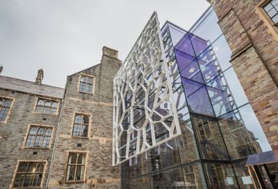 The Fry Building houses lecture theaters, teaching rooms, and study spaces within its historical stone walls and modern glass additions.