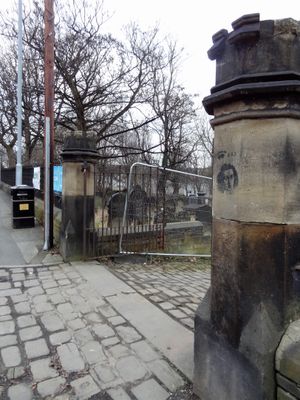 Churchyard Wall With Railings And Gate Piers To South And Steps To North, churchyard wall in Leeds, West Yorkshire, UK