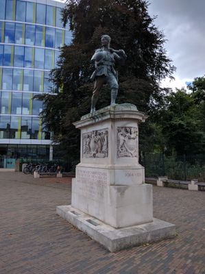 The memorial stands outside the Cambridge University Botanic Garden entrance on Hills Road, following its relocation in 2012 from its previous Station Road position.
