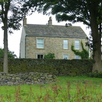 Farmhouse and attached farm buildings, Grade II listed farmhouse in Whitle near New Mills, High Peak, Derbyshire, UK
