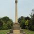 The memorial features a tall tapering shaft of Hopton Wood stone with a diamond entablature displaying carved images of Christ the King on its sides.