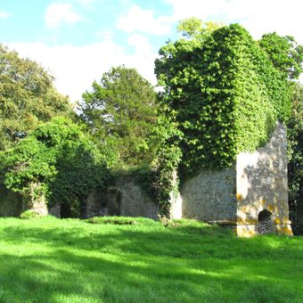 Ruins of former St Michael's Parish Church, grade II listed building in St Clears. Within enclosed cemetery, at the end of a footpath, SE of Trefenty Farm