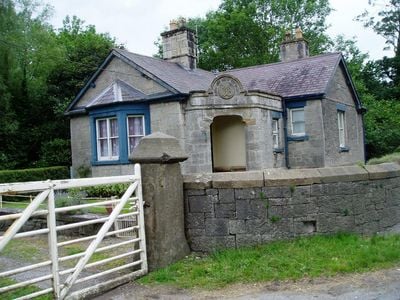 Mold Lodge, Grade II listed building in Nannerch. Set back from the road at the SE corner of the park at Penbedw, N of a junction with a minor road to Llandyrnog.