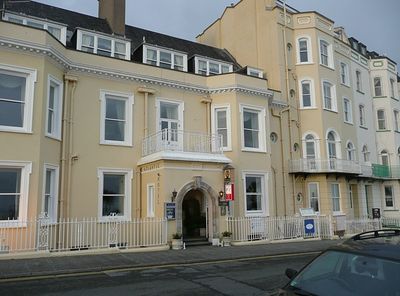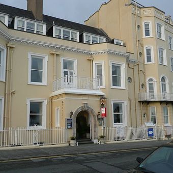 The Atlantic Hotel and area railings, Grade II listed building in Pembrokeshire. Facing the sea on the NE corner of The Esplanade and Picton Street.