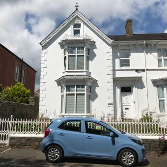 Bryn Roma, including front garden wall, railings and gate, Grade II listed building in Carmarthenshire. Situated at left end of terraced row running SE from Penuel Street.