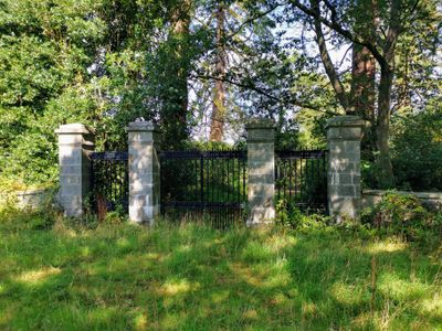 Gatepiers and low walls to main entrance to Trawsgoed House