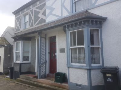 Bodalaw, Grade II listed building in Conwy. The northernmost of a pair of houses fronting the street near the junction with High Street.