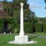 The Portland stone memorial cross stands within a garden bordered by brick walls and features an octagonal cross section on an octagonal base.