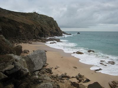 Access requires a 30-minute walk from Porthcurno car park or a 10-minute descent from St Levan, with both paths including steep sections.