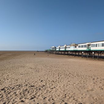 The beach is known for its wide, flat sand that exposes large areas at low tide and creates ideal conditions for coastal walks. This natural feature makes it popular for various activities that depend on tidal changes.