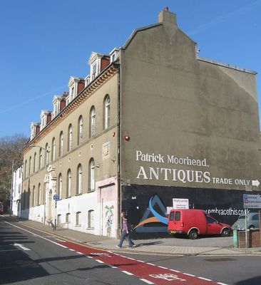 Located near Brighton city center at coordinates 50.82492, -0.14194, the former military building now functions as an antiques warehouse.