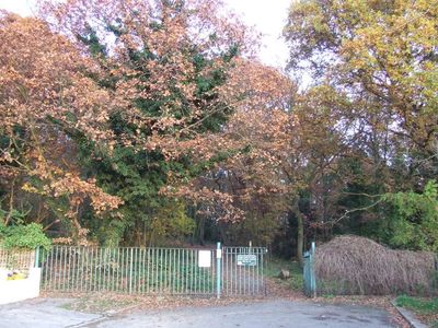 A World War II bomb crater remains visible within the woodland, alongside remnants of an air raid shelter constructed during the conflict.