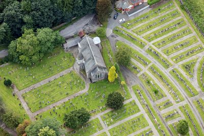 The adjacent Old Kirk ruins contain restored 17th and 18th-century gravestones, including two rare hogback stones from the 1100s.