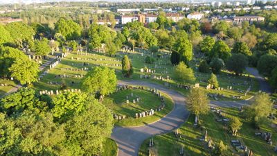 Visitors can access the cemetery through multiple entry points and follow the network of maintained pathways to explore different sections of the grounds.